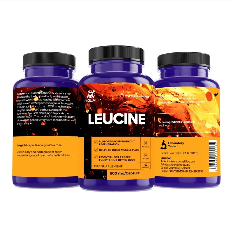 Az L-leucin a BCAA (elágazó láncú aminosavak) csoport legfontosabb aminosava, amely az anabolikus folyamatok kulcsfontosságú aktivátoraként működik. A sport világában "biokémiai kapcsolónak" tekintik, amely tájékoztatja a szervezetet, hogy készen áll az izomrostok építésére és javítására.