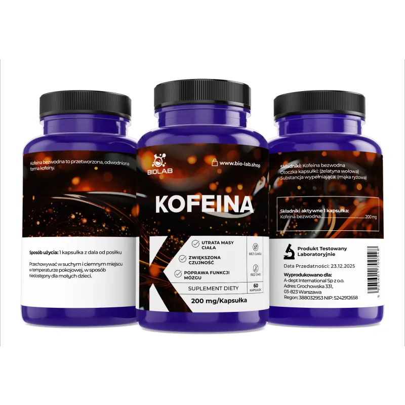 Vízmentes koffein - tiszta koffein fehér por formájában. Ugyanolyan jól vagy jobban serkent és felfrissít, mint a kávé. A kávé illatától és ízétől mentes, kiváló kiegészítő a szellemi és fizikai stimulációra vágyó aktív emberek számára.