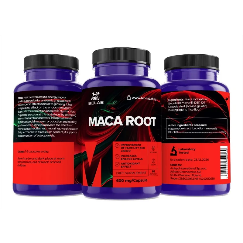 Maca gyökér 600 mg - növényi alapú támogatás a vitalitás, a libidó és a test egyensúlyának fenntartásához.